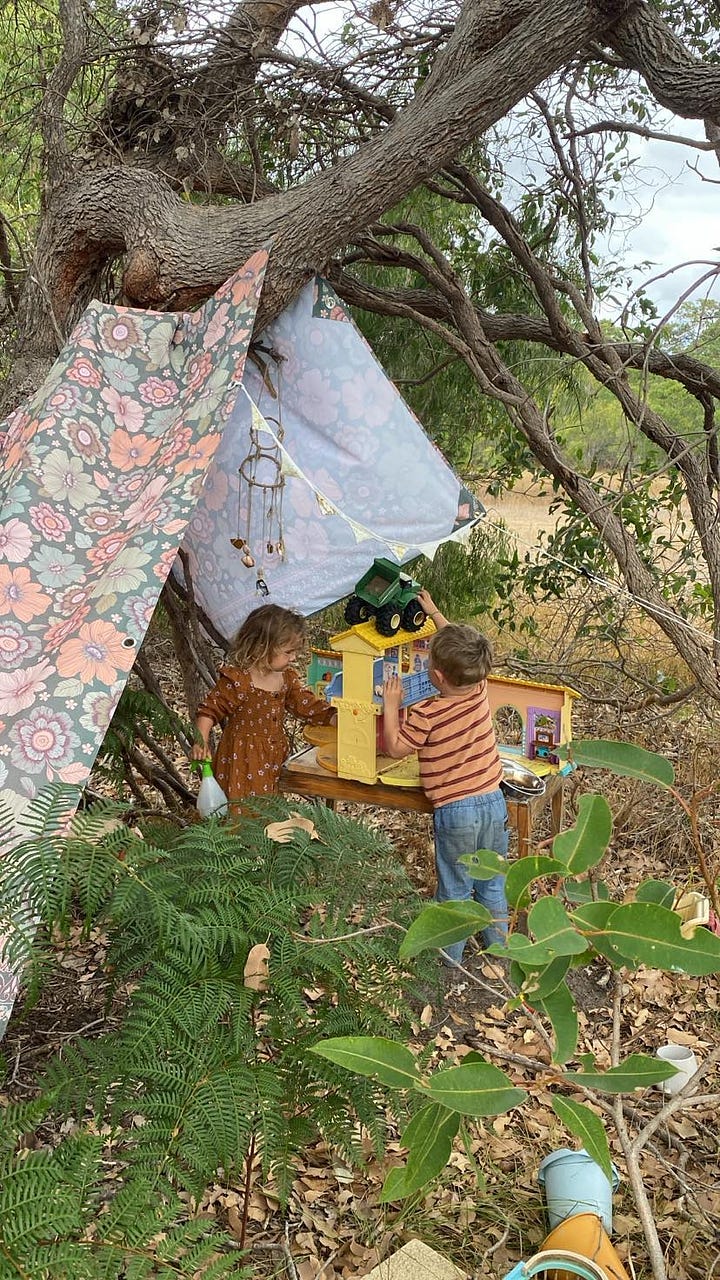 Play doesn’t have to be elaborately set up stations and activities. It doesn’t have to be done in perfectly decorated playrooms. A mud kitchen doesn’t have to cost the earth. Dress-ups do not have to be organic plant-dyed silk scarves. Play can be as simple as giving your kids an empty yoghurt bucket and sending them outside. Every time I start to go down the rabbit hole of thinking I need to be doing or buying more to entertain my kids I stop and remember what it is they actually enjoy.